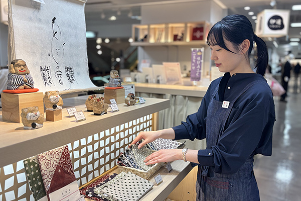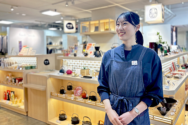 「伊達クラフト」は宮城県をはじめとした東北全体の伝統工芸品や民芸品などを取り扱う藤崎独自のセレクトショップです。そのため、「伊達クラフト」で取り扱っている様々な商品の魅力がお客様に伝わった時にやりがいを感じます。「楽しかったからまた来るね」と言ってくださったお客様が、再度ご来店いただいた際にまた楽しんでいただけるよう、頻繁に変化する品揃えに対応し、職人さんの想いや商品のストーリーが伝わるよう接客販売に取り組むことがやりがいとなっています。
